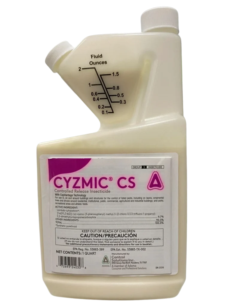 CYZMIC CS is a micro-encapsulated suspension containing Lambda-Cyhalothrin, designed to offer extended release of the active ingredient for enhanced efficacy and longevity in pest control applications.