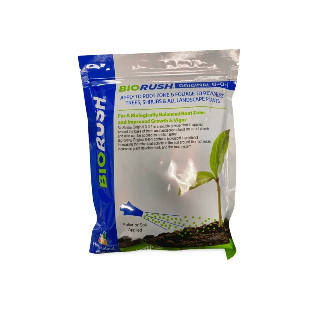 DIEHARD BioRush is used as a maintenance product for green-up. It is a dry, water-soluble root growth stimulant with nitrogen-fixing, phosphorus-solubilizing, and growth-promoting beneficial bacteria packaged in pre-measured, labeled bags for easy use with tank sprayers.