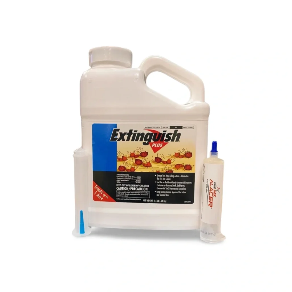 The effective combination fire ant product, Extinguish® Plus fire ant bait, controls and kills existing ants while preventing new colonies from forming. Containing both the powerful adulticide, Hydramethylnon, which provides a quick knockdown, and insect growth regulator (IGR), (S)-methoprene, which affects the queen’s reproductive system, this powerful fire ant control tool provides a unique two-way killing action.
