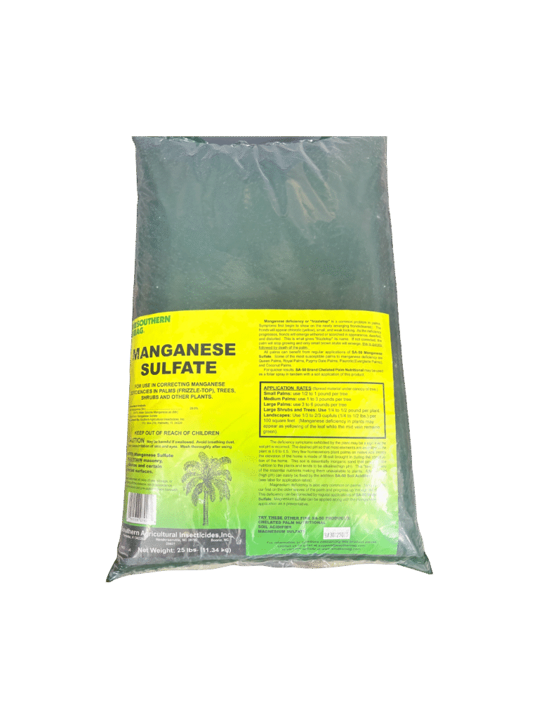 Manganese Sulfate is a water-soluble micronutrient fertilizer used to supply manganese to turfgrass, ornamentals, and landscape plants. Manganese is essential for chlorophyll production and proper plant growth, especially in sandy Florida soils where deficiencies are common.