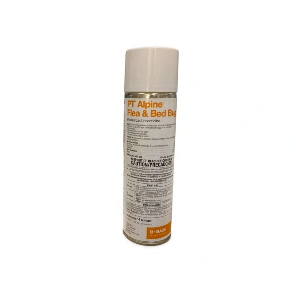 PT Alpine Flea & Bed Bug Pressurized Insecticide. Specially formulated to incorporate easily into your line of service, this efficient, premixed, ready-to-use broadcast spray is now labeled for direct use on mattresses and in suspected areas of infestation. It kills all stages of bed bugs fast, even pyrethroid-resistant bed bugs. Pressurized technology makes application easy with a light spray that dries quickly, allowing rapid reentry, unlike dilutable applications. With its ease of use and knockdown in as few as 30 minutes, PT Alpine Flea & Bed Bug Pressurized Insecticide is the ideal product for clean outs.